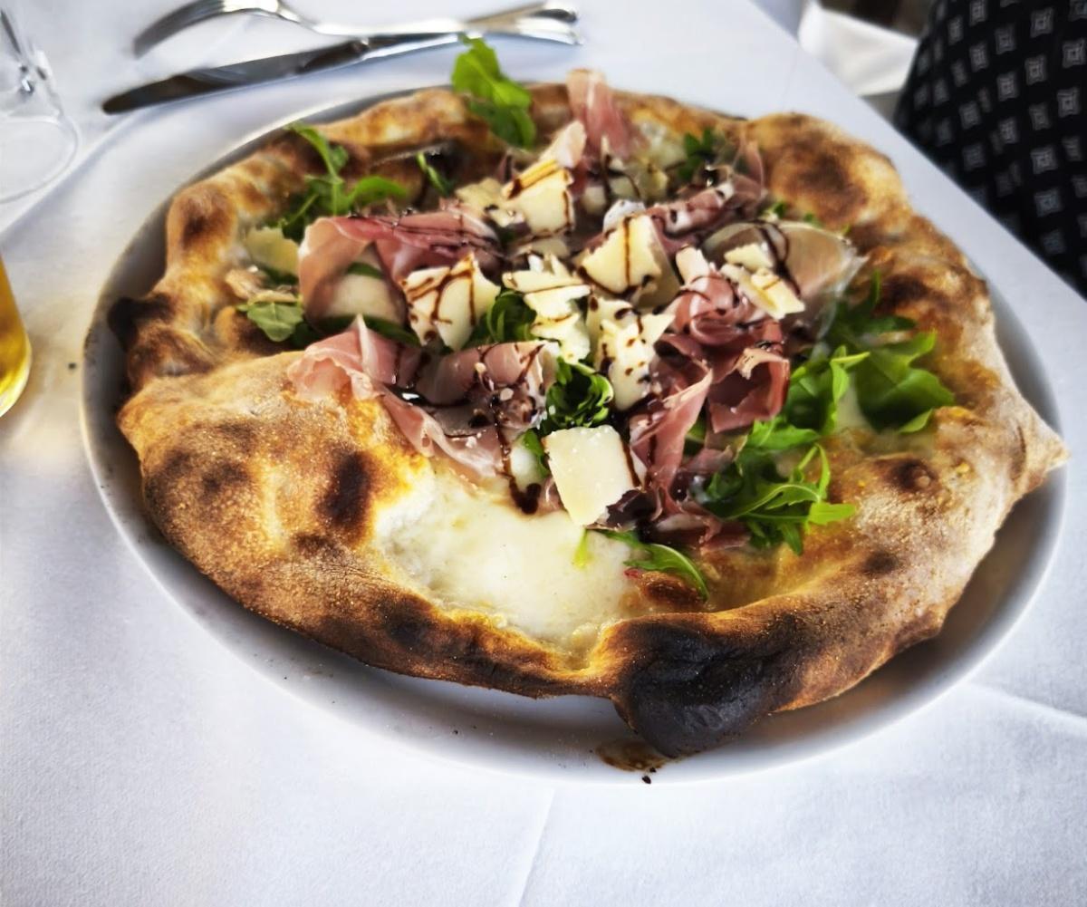 Pizza e menù di pesce in un ampio locale dal clima informale con sedie impagliate, tovaglie a quadri e dehors.